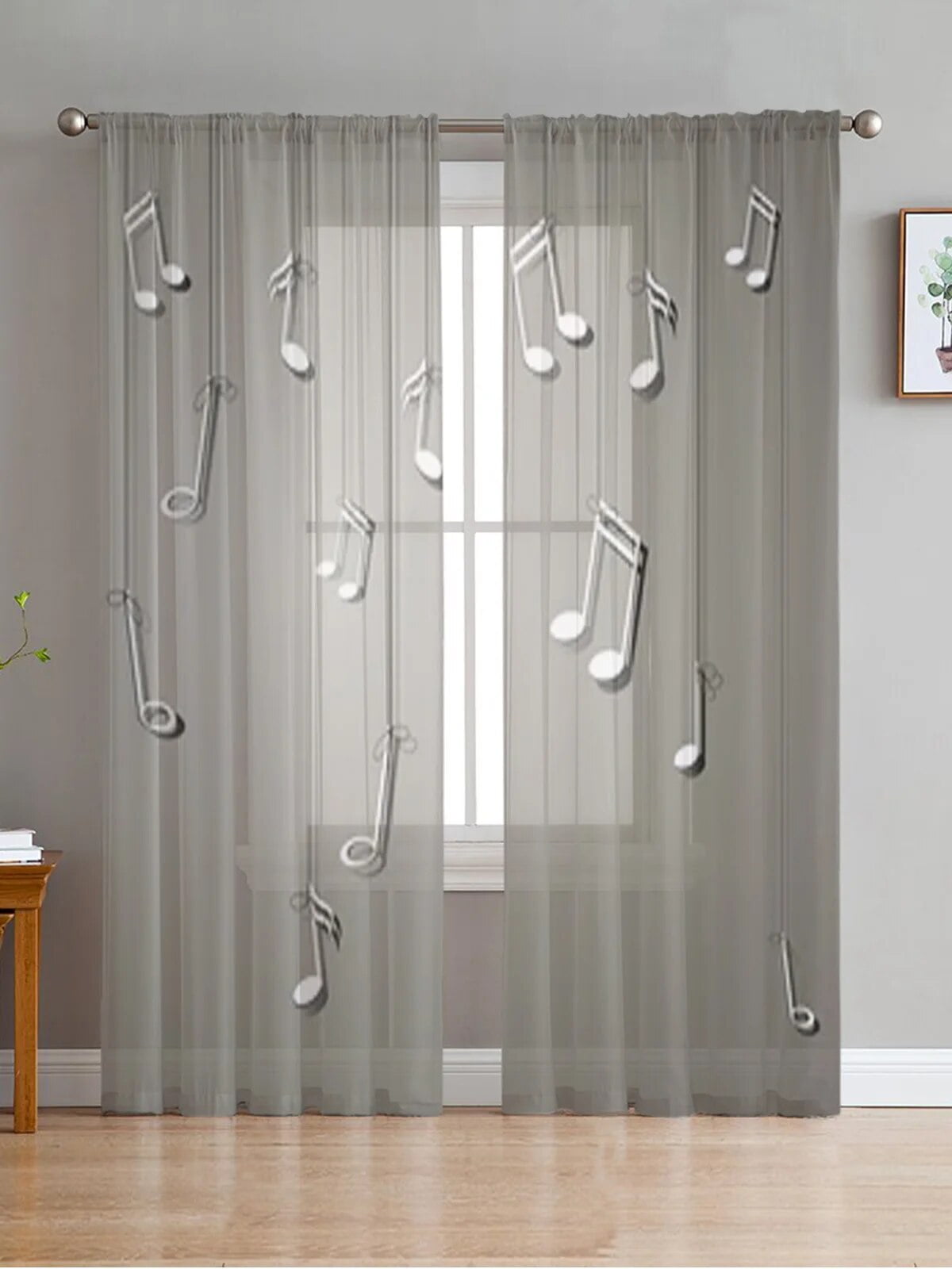 Abstract Background With Notes Sheer Curtains Bedroom Voile Curtain