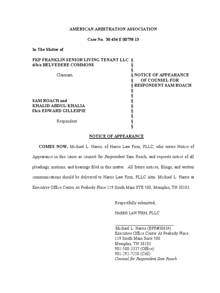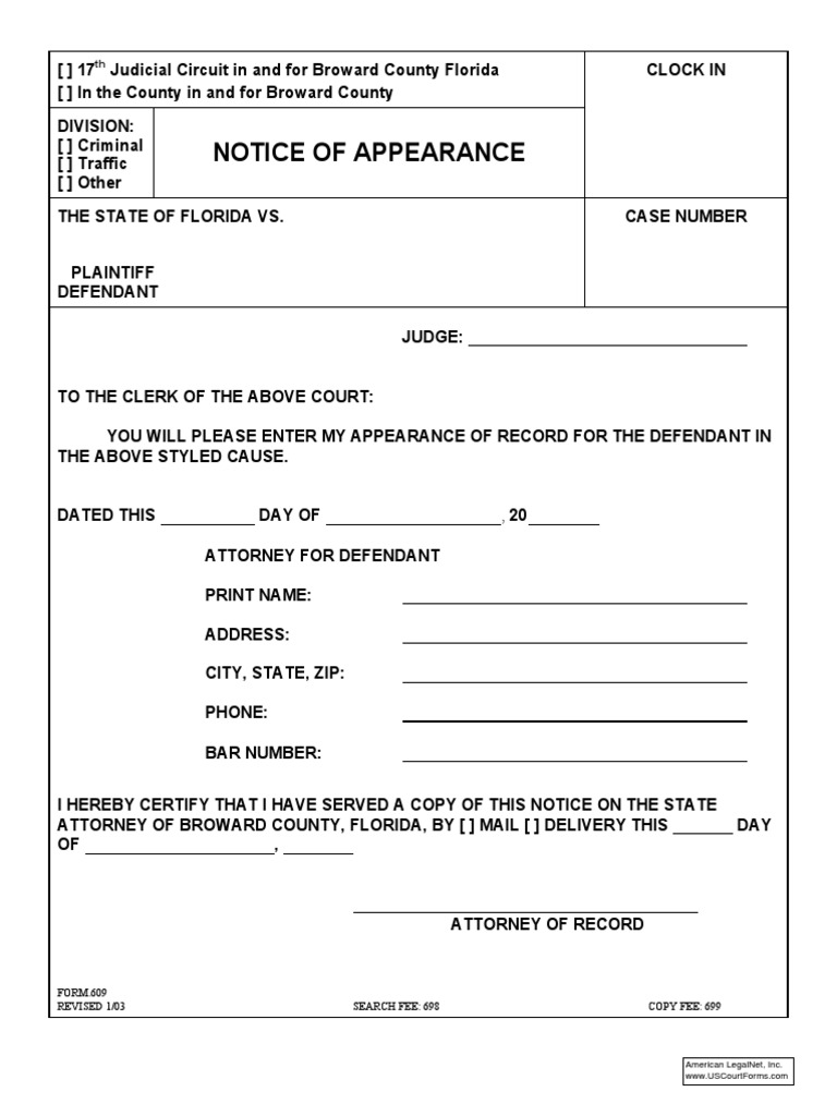 Notice of Appearance of Counsel PDF Affidavit Common Law