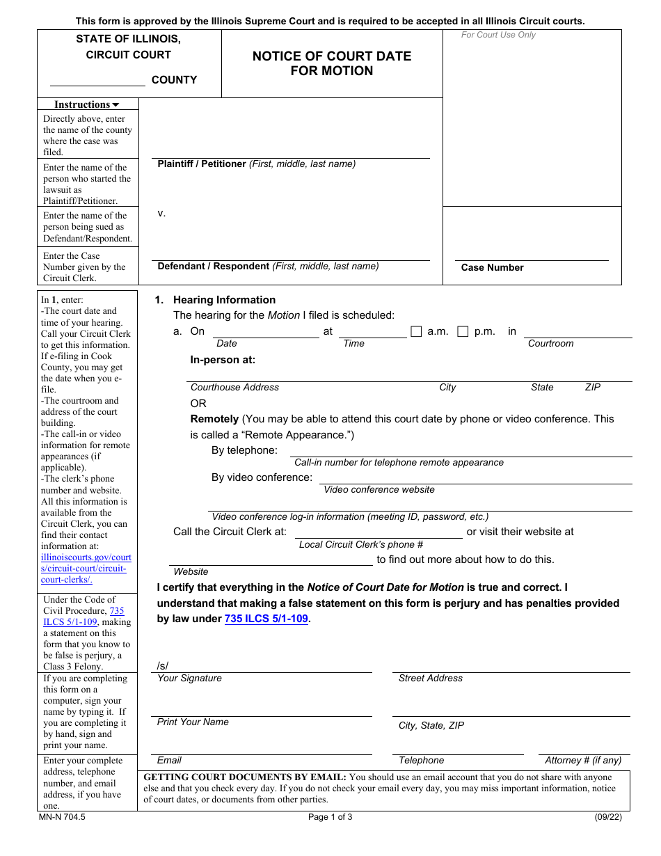 Notice of Court Date for Motion Illinois Legal Aid Online