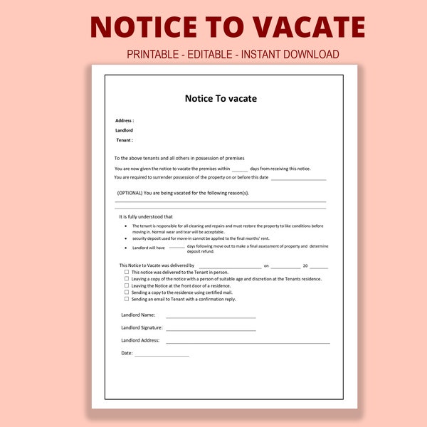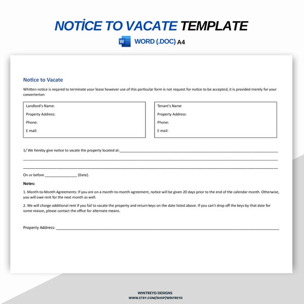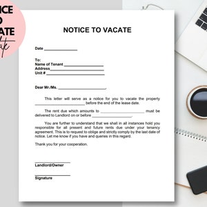 Notice to Vacate Template Notice to Vacate Letter Editable Etsy