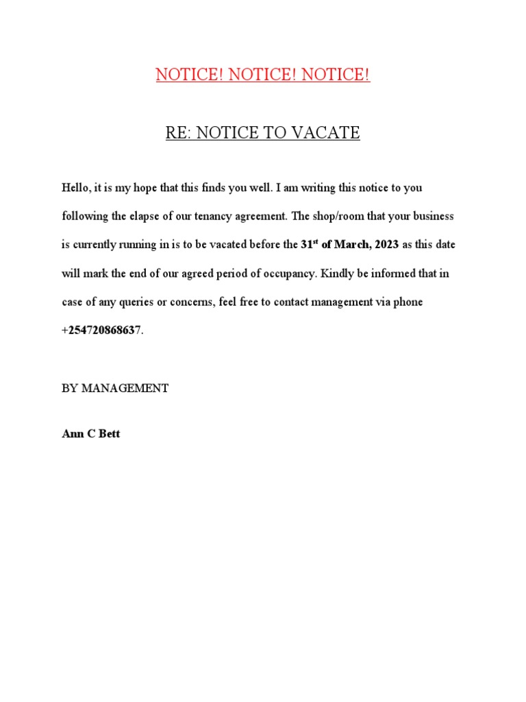 Notice to Vacate Template Notice to Vacate Letter Editable Etsy UK