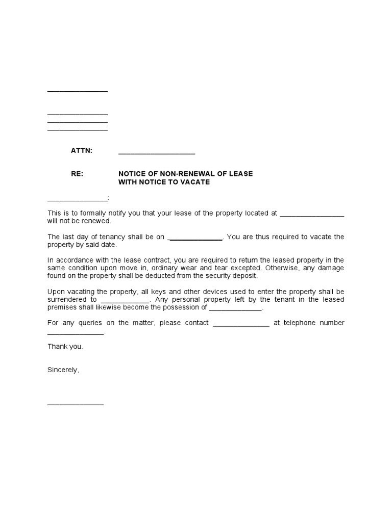 Valid Notice of Lease Non Renewal Forms ️ Blank PDF Template