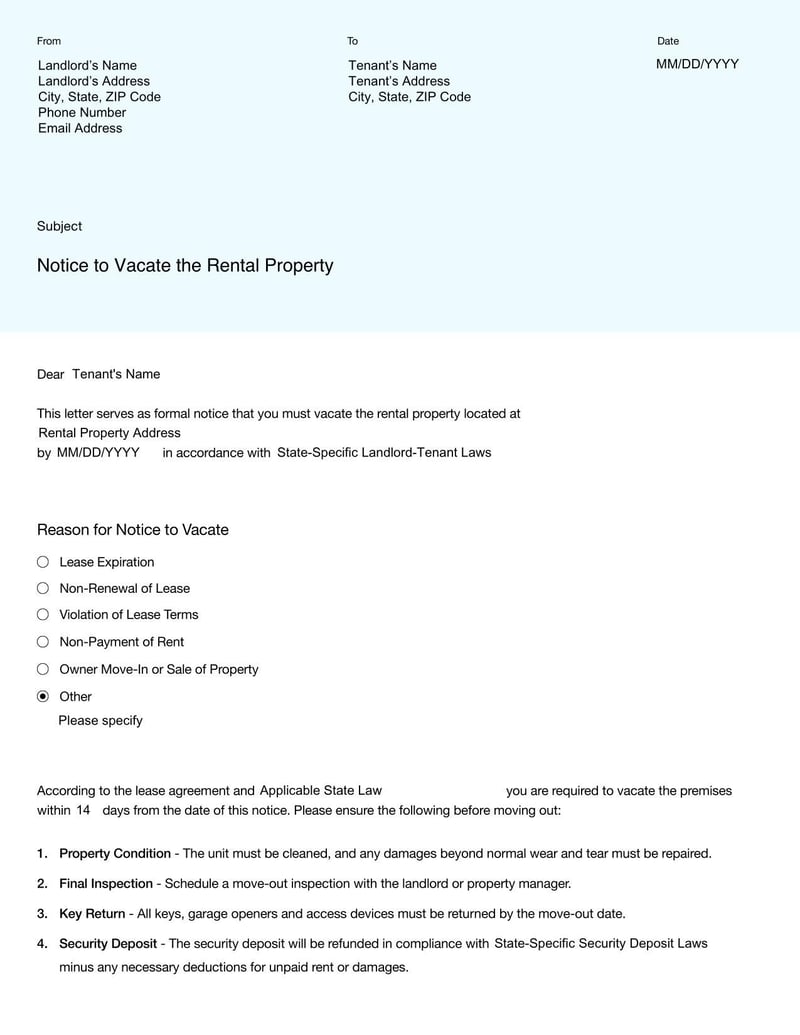 💌 Notice to vacate sample letter to tenant How to Write a Notice to