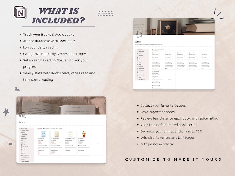 Notion Book Tracker Light Academia Digital Reading Journal Template
