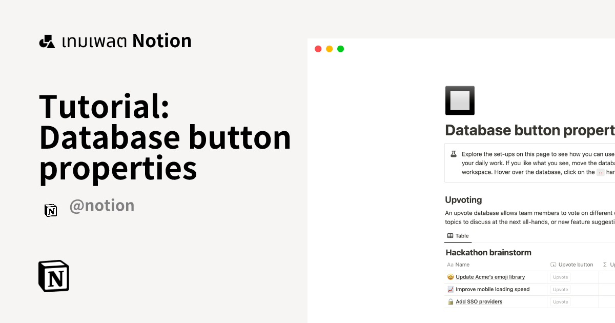 เทมเพลต Tutorial: Database button properties โดย Notion มาร์เก็ตเพลส