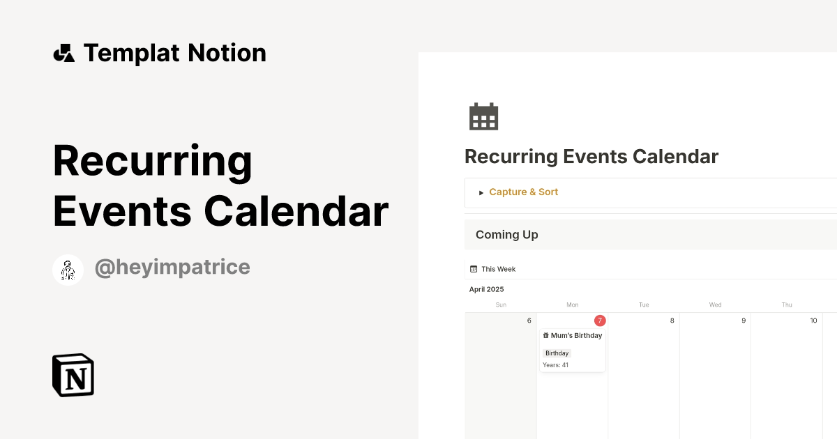 Templat Recurring Events Calendar Notion Marketplace