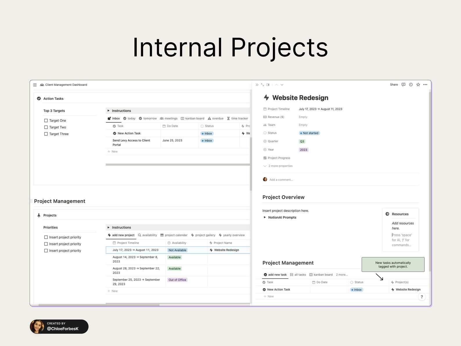 All in one notion client portal template project management client