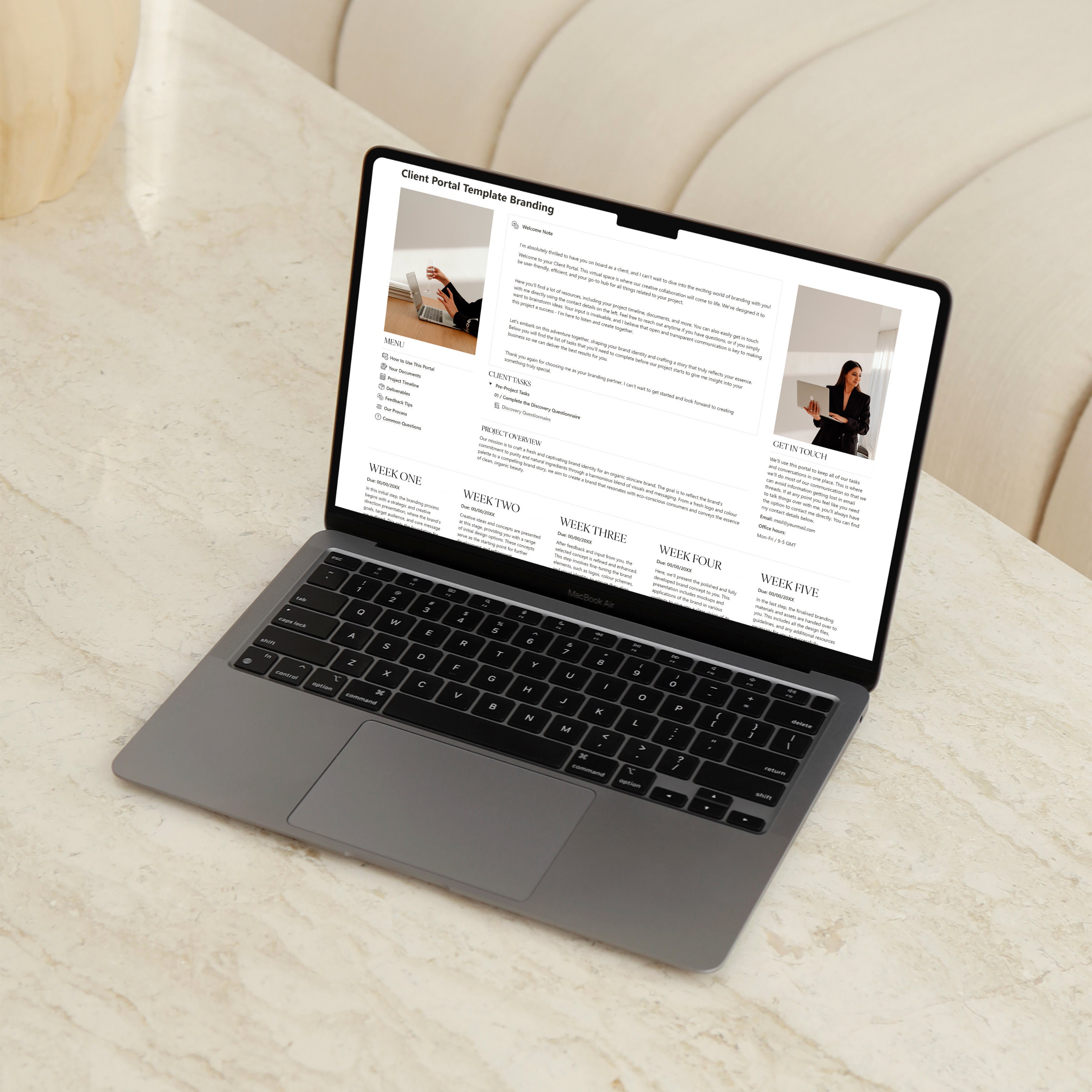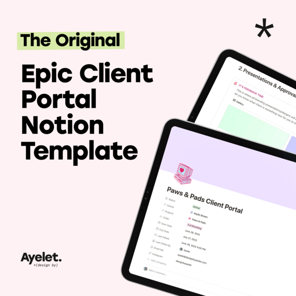 Notion design client portal template designers brand website client