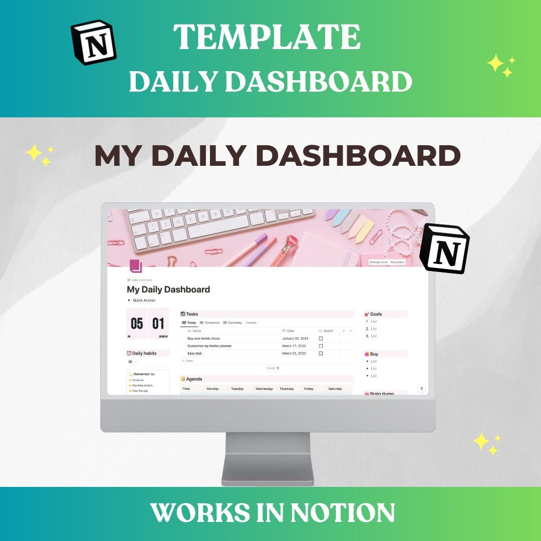 Notion Template: My Daily Dashboard Daily / Weekly / Monthly Aesthetic