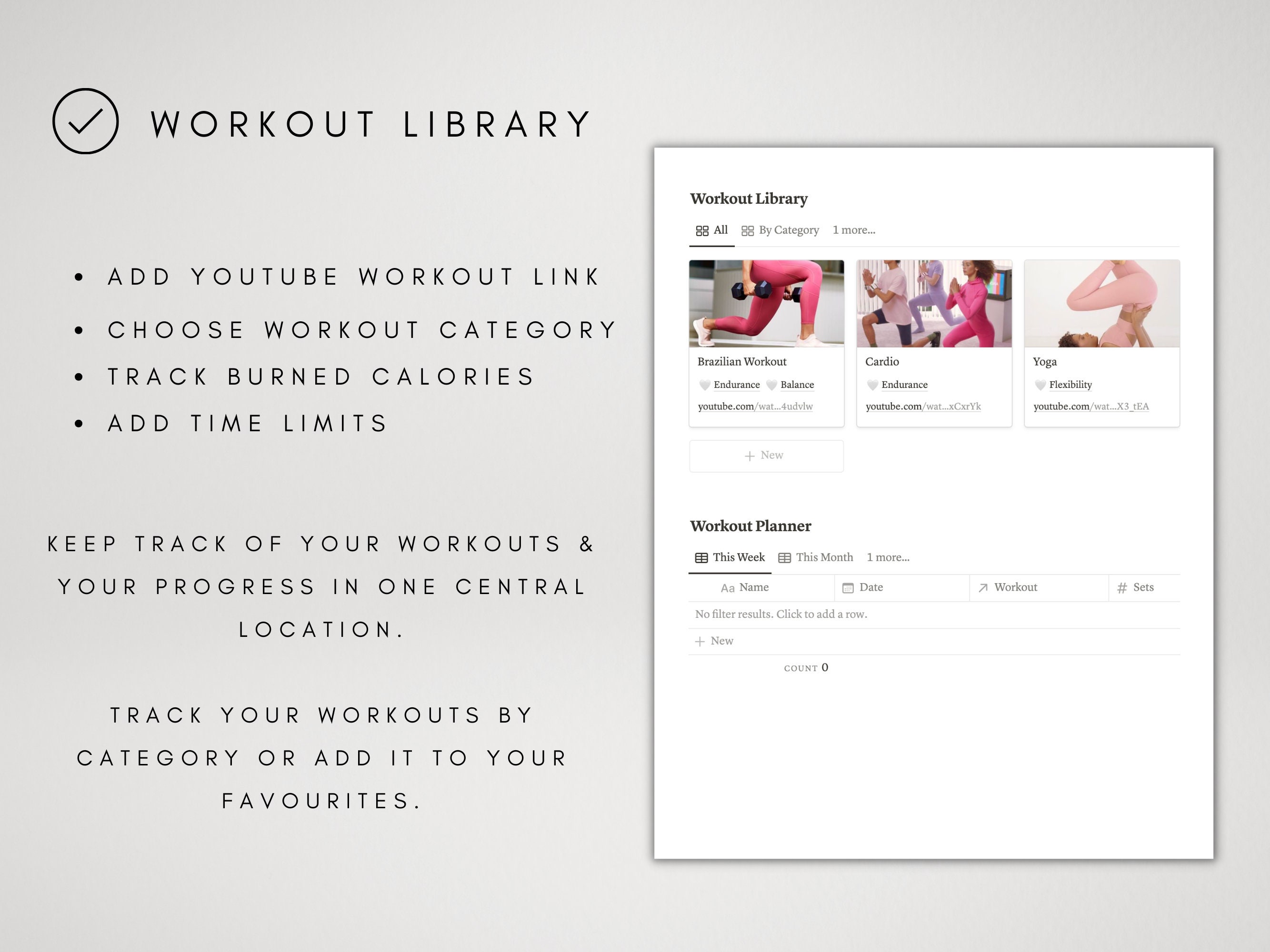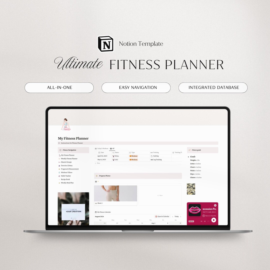Notion Fitness Planner Template Digital Workout Planner Weight Loss