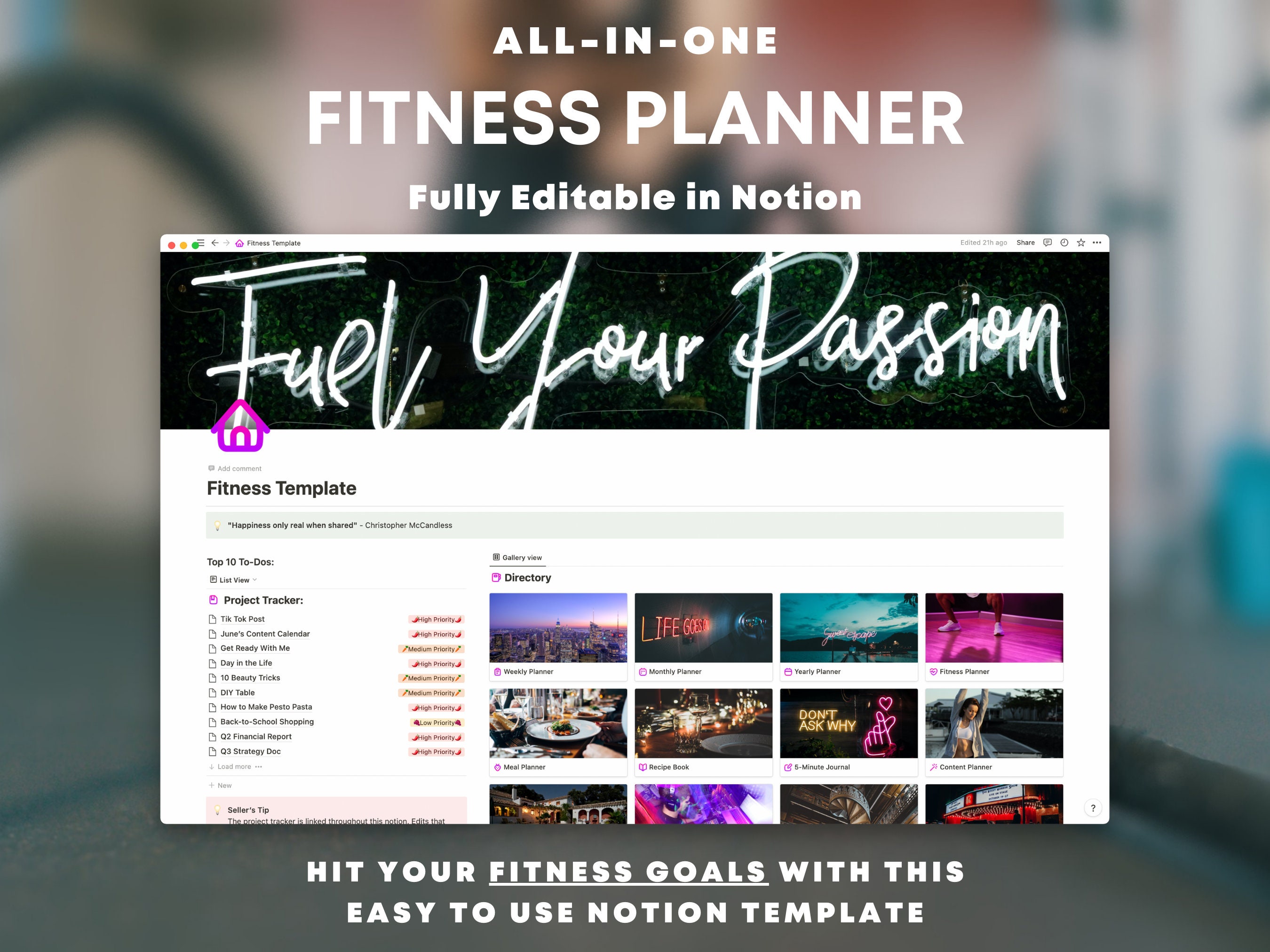 Notion Template Fitness Planner Notion Fitness Planner Fitness Tracker