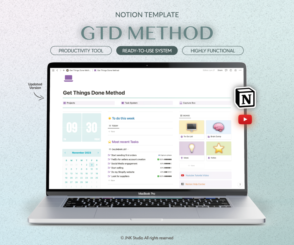 (GTD) Getting Things Done Template by Avant Notion Marketplace