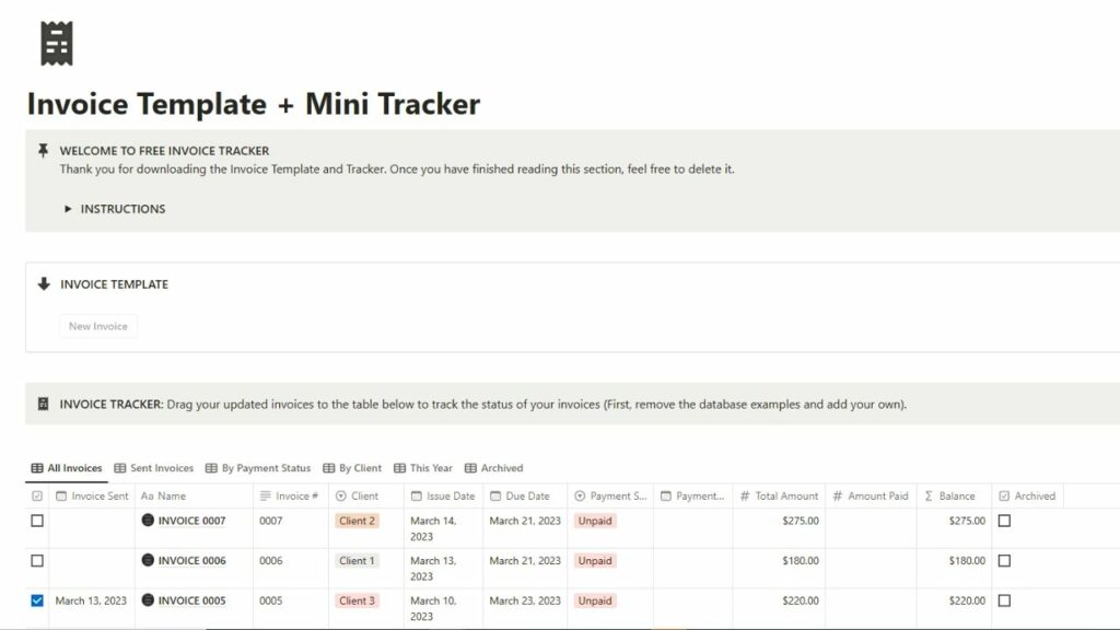 Notion Invoice Template Tracker (2023) Landmark Labs