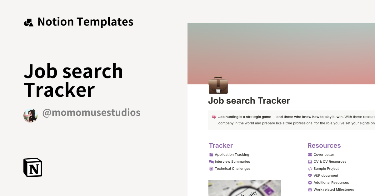Job search Tracker Template by momomuse studio Notion Marketplace
