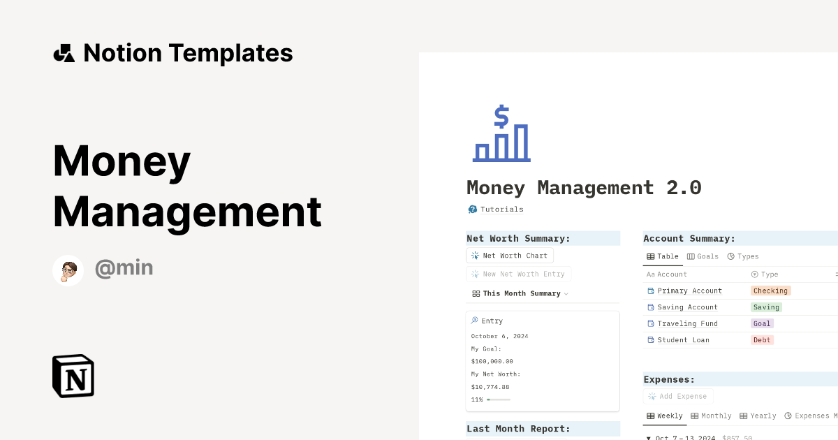 Money Management Template by Min Notion Marketplace