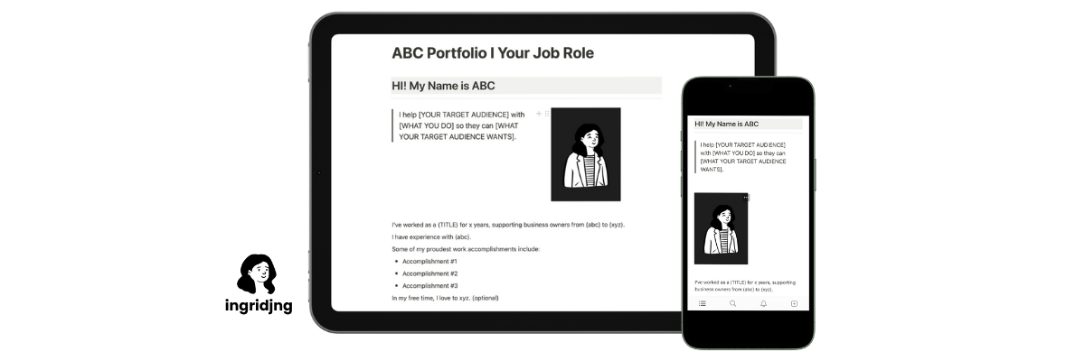 FREE Notion Portfolio Template by Ingrid Janice Clicky