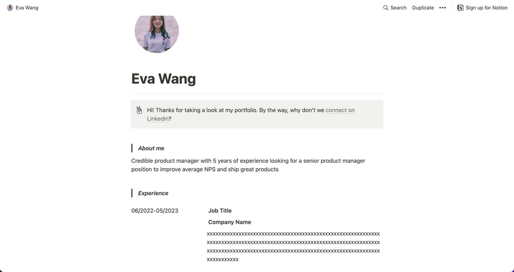 Notion Portfolio template