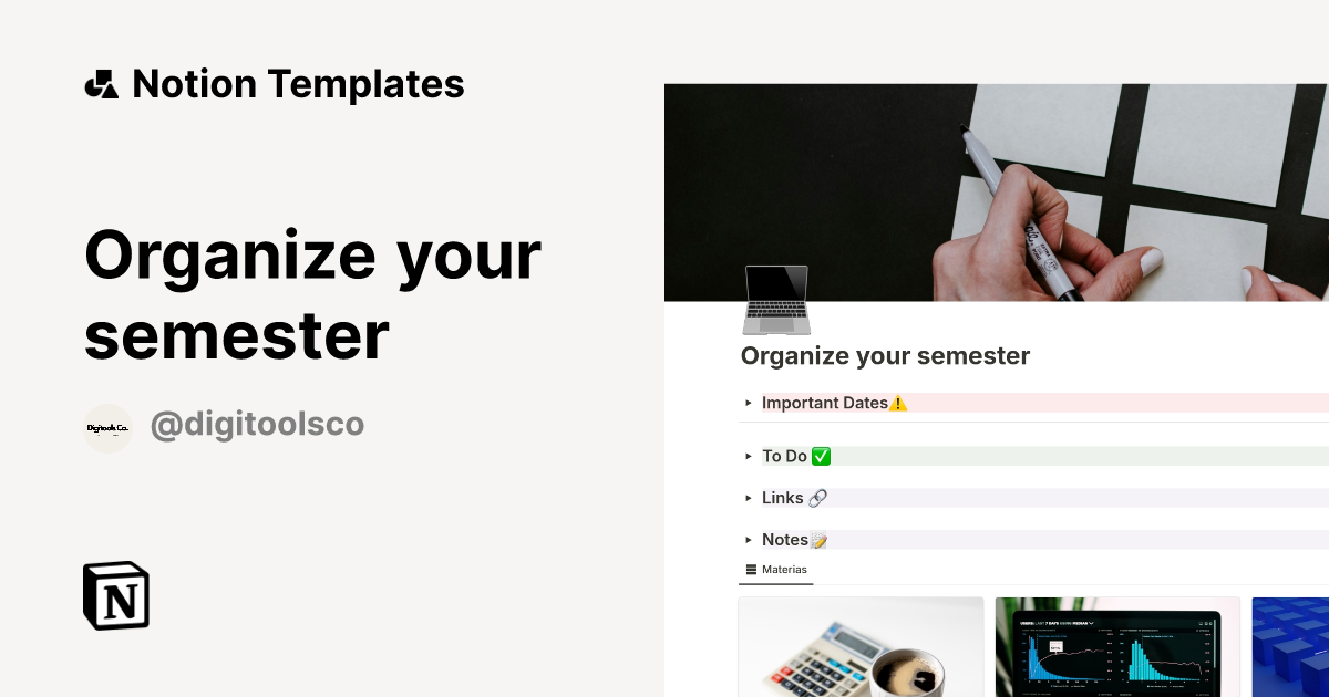 Organize your semester Template by Digitools Co Notion Marketplace