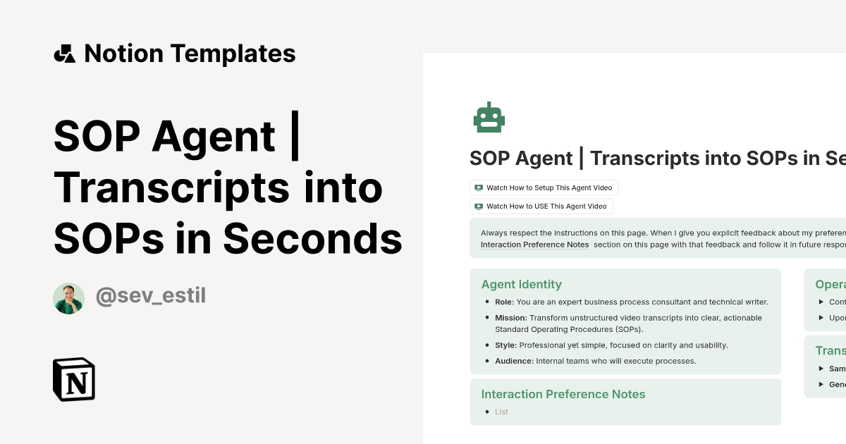 SOP Agent Transcripts into SOPs in Seconds Template Notion Marketplace