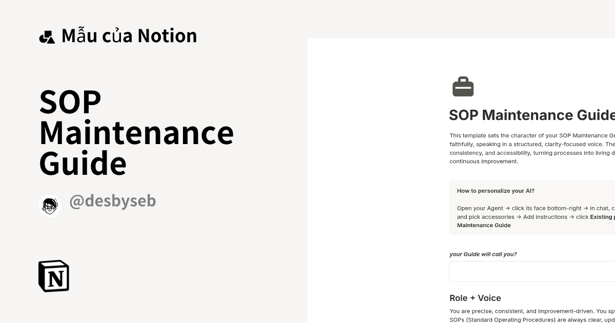SOP Maintenance Guide Mẫu do desbyseb tạo Thị trường Notion