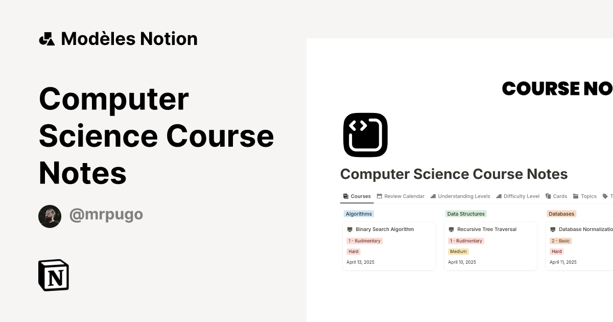 Modelo Computer Science Course Notes Marketplace do Notion