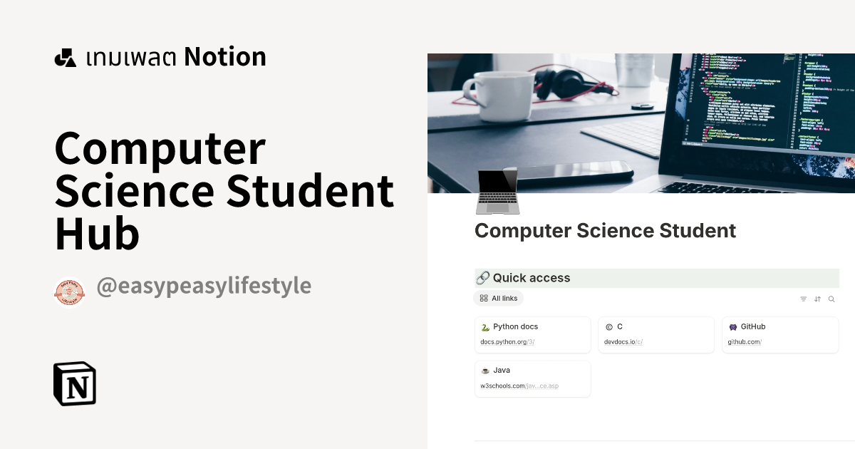 เทมเพลต Computer Science Student Hub มาร์เก็ตเพลส Notion