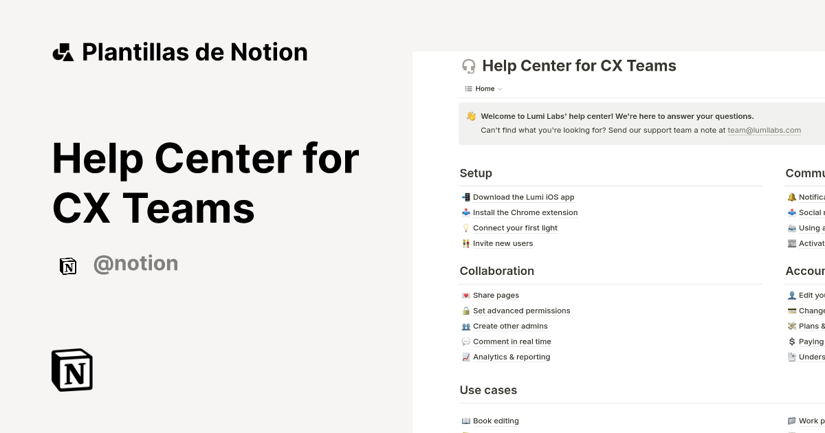 Plantilla Help Center for CX Teams 2025 Notion Marketplace