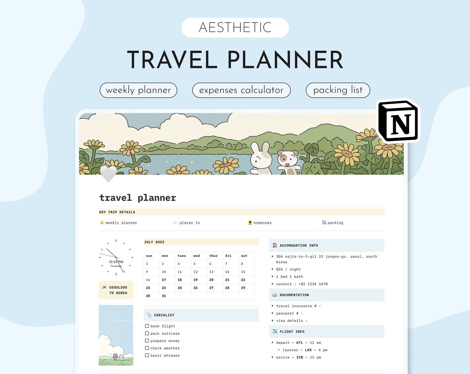 Travel Planner Notion Template Notion Dashboard Notion Planner Notion