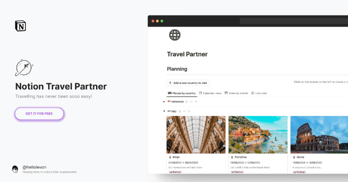 Travel Partner Notion Template: Organize Plan Effortlessly