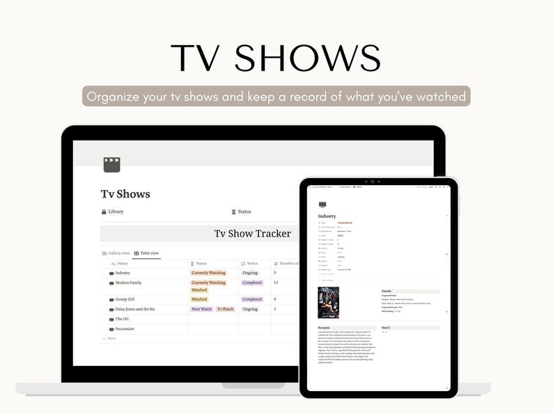 Notion TV Show Tracker Template Etsy