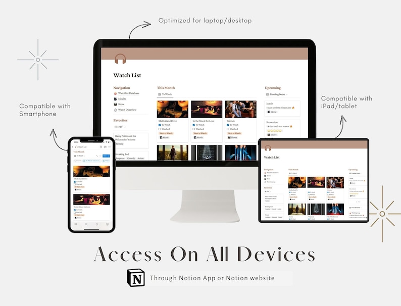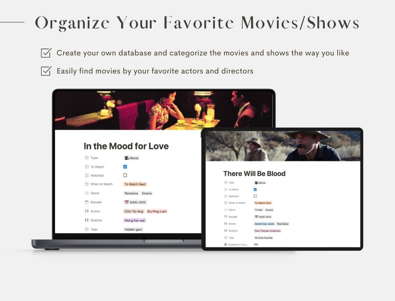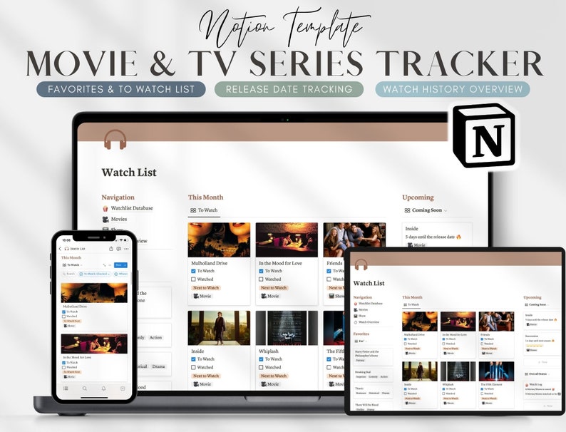 Notion Movie TV Show Tracker Template: Digital Watchlist Etsy