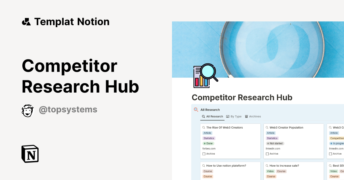 Competitor Research Hub Templat oleh TopSystems io Notion Marketplace