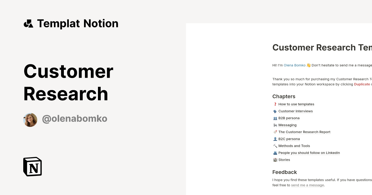 Customer Research Templat oleh Olena Bomko Notion Marketplace
