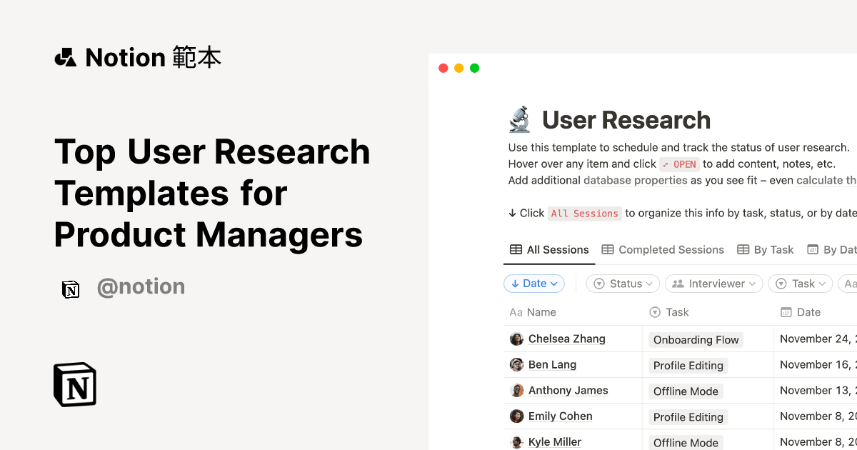 Top User Research Templates for Product Managers Notion 範本 Marketplace