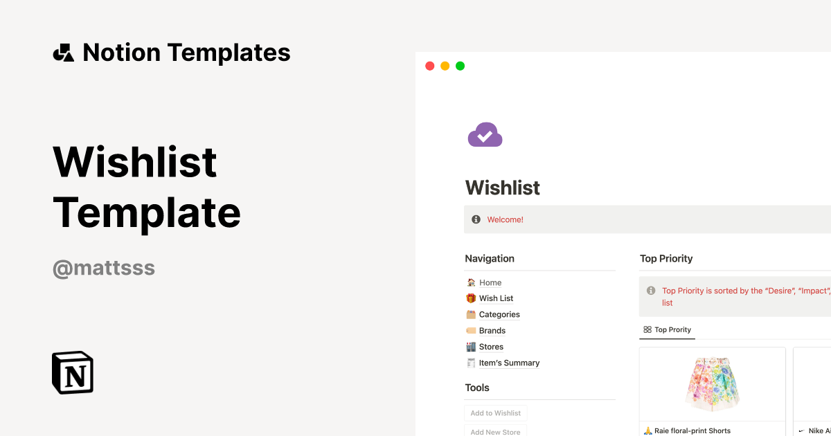 Simple Wishlist Shopping List Notion Template Gridfiti