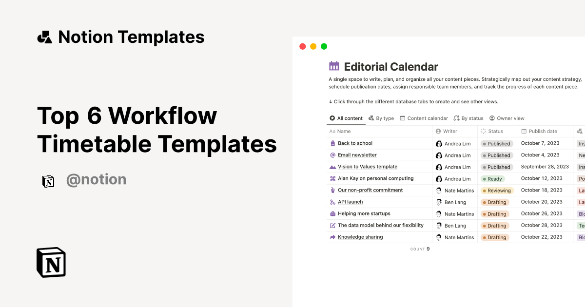 Top 6 Workflow Timetable Templates Notion Template Marketplace