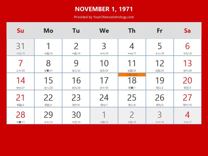 Chinese Calendar Nov 18 1971: Auspicious Things to Do and Hours Bazi