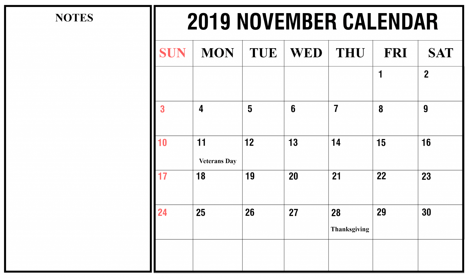 November 2019 Calendar With Holidays Free Printable Calendar 2025