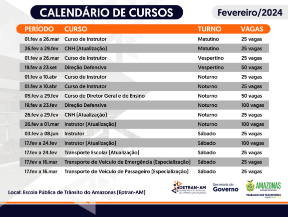 Detran AM abre inscrições para nove cursos na Escola Pública de