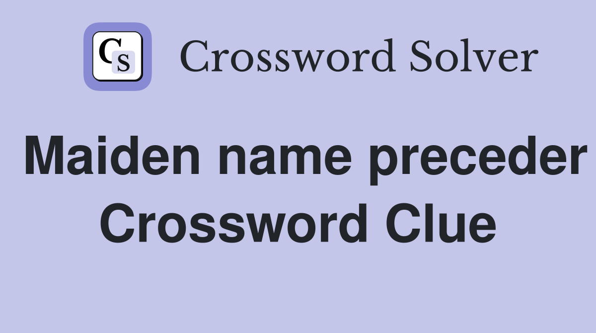 Maiden name preceder Crossword Clue Answers Crossword Solver