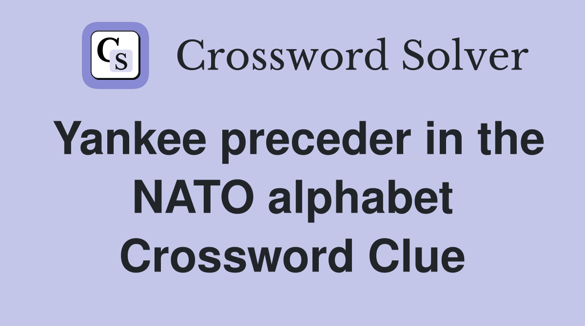 Yankee preceder in the NATO alphabet Crossword Clue Answers