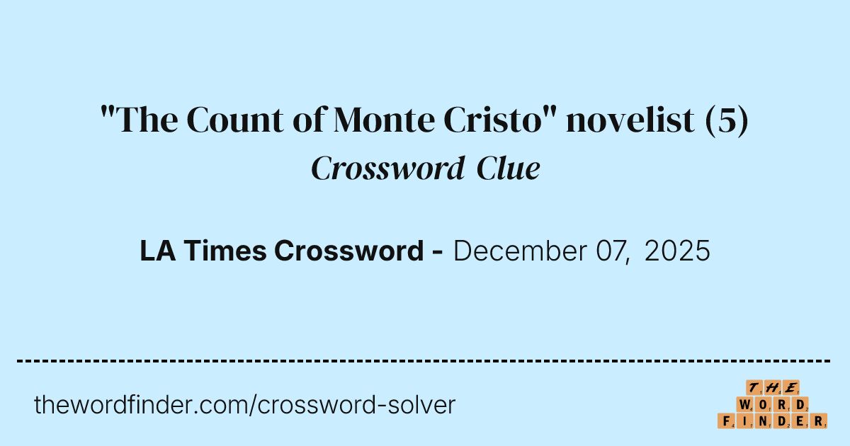 quot The Count of Monte Cristo quot novelist Crossword Clue