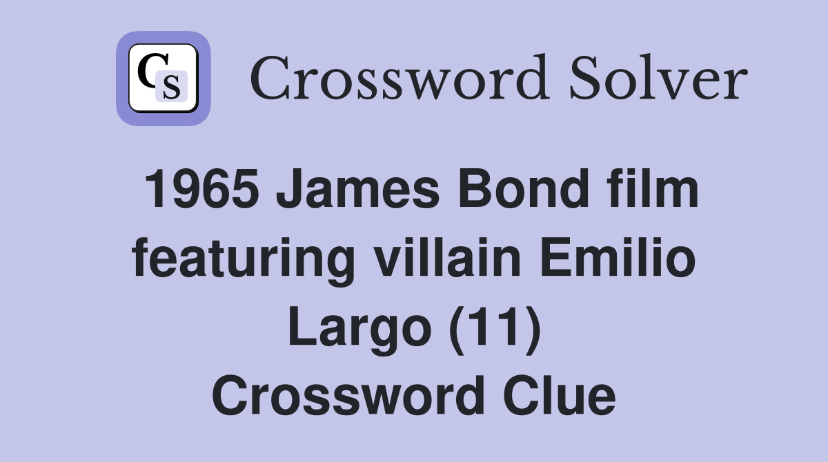 1965 James Bond film featuring villain Emilio Largo (11) Crossword