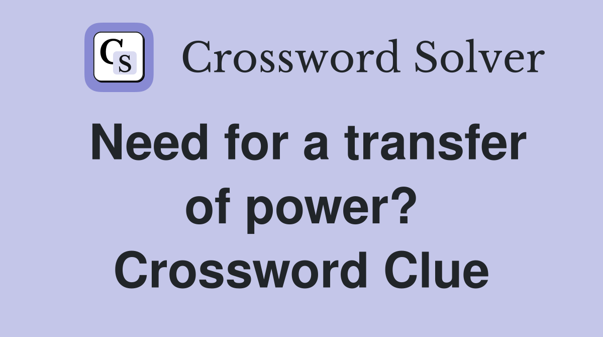 Need for a transfer of power? Crossword Clue Answers Crossword Solver