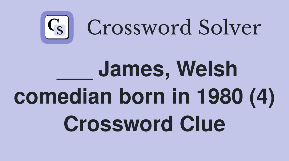 James Welsh comedian born in 1980 (4) Crossword Clue Answers