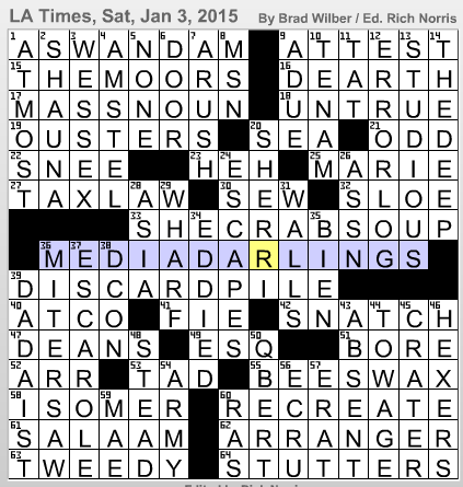 L A Times Crossword Corner: Saturday Jan 3rd 2015 Brad Wilber