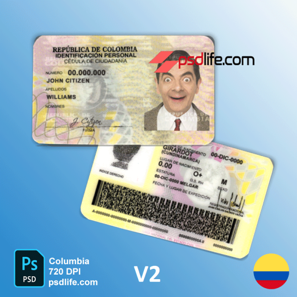 Colombia fake id card Psd Template editable / Plantilla PSD de tarjeta