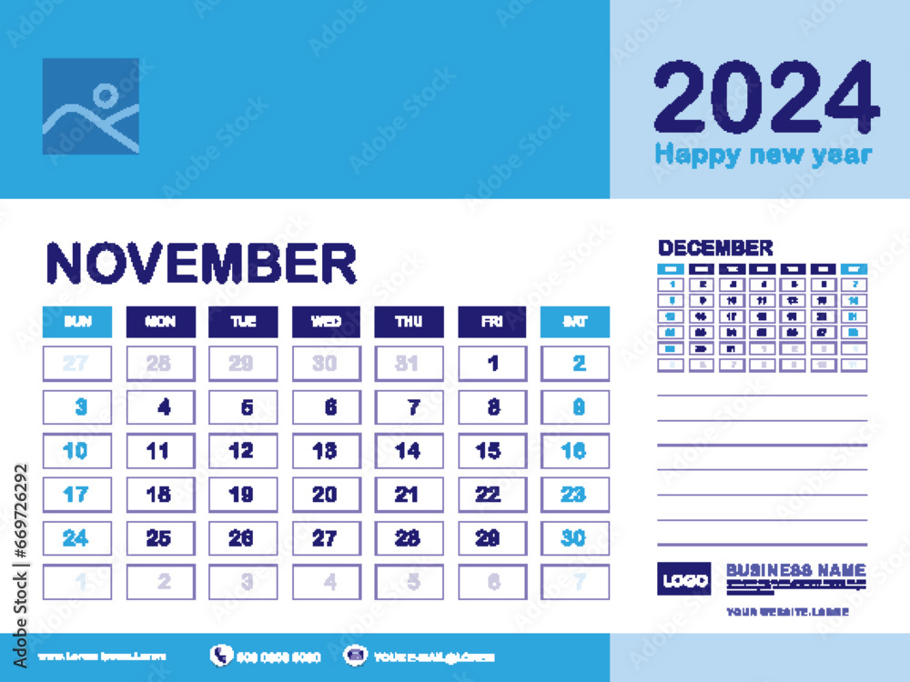 November 2024 year Calendar planner 2024 and Set of 12 Months week