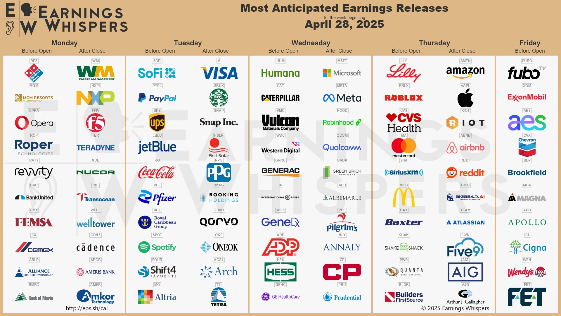 Most anticipated earnings releases for the week beginning April 28