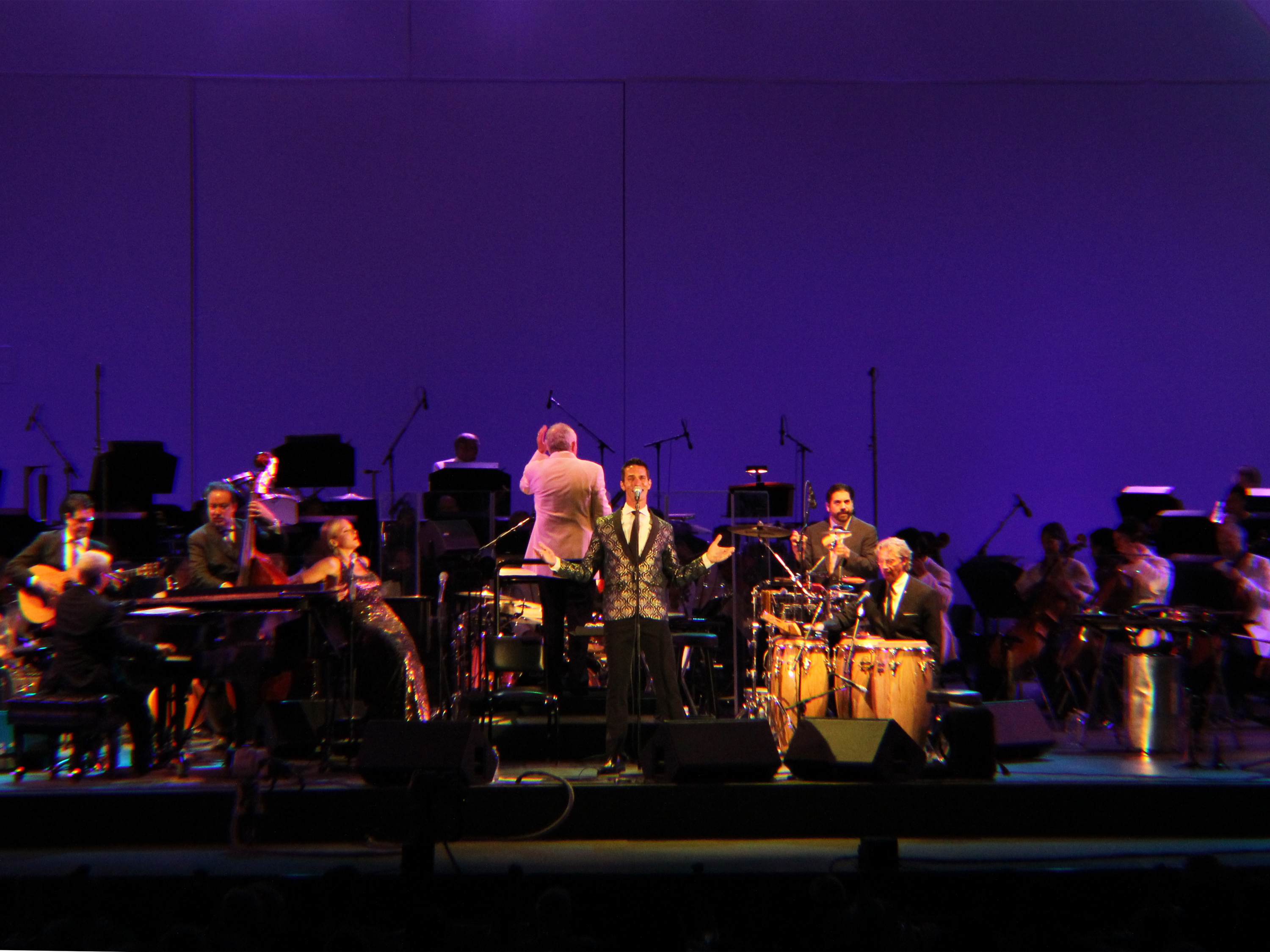 NPR correspondent Ari Shapiro performs on stage with Pink Martini